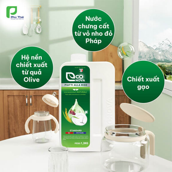 Đặt mua Nước rửa chén gạo Econova – Sạch bóng chén đĩa, an toàn dịu nhẹ từ gạo