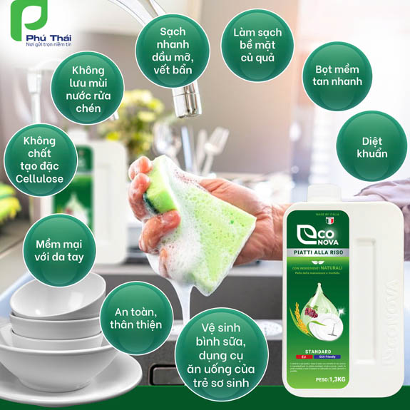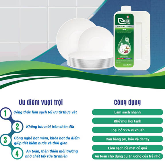 - Econova: Giải pháp sạch toàn diện cho bếp nhà bạn – Từ chén đĩa đến bình sữa, rau củ. (Nhấn mạnh tính toàn diện và liệt kê các đối tượng sử dụng)